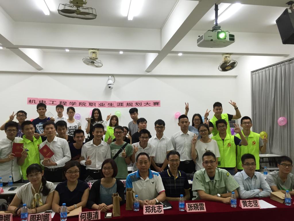 9月20日晚,机电工程学院举办“2016年大学生职业生涯规划大赛”决赛。机电工程学院副院长、教师代表以、成功企业校友代表和各参赛选手拉拉队等30余人参加了本次活动。