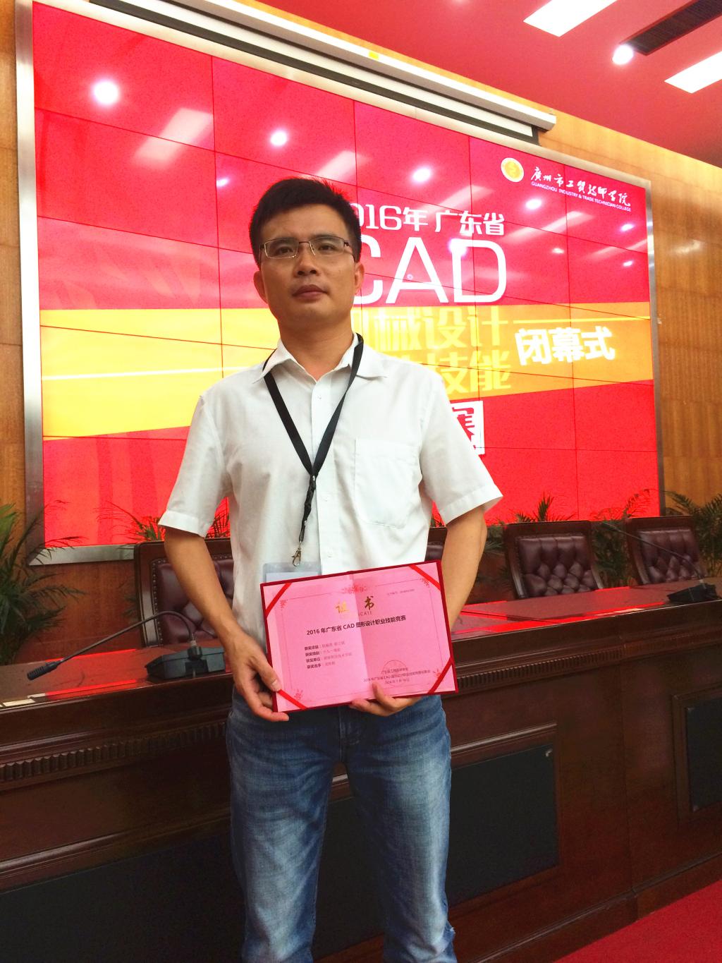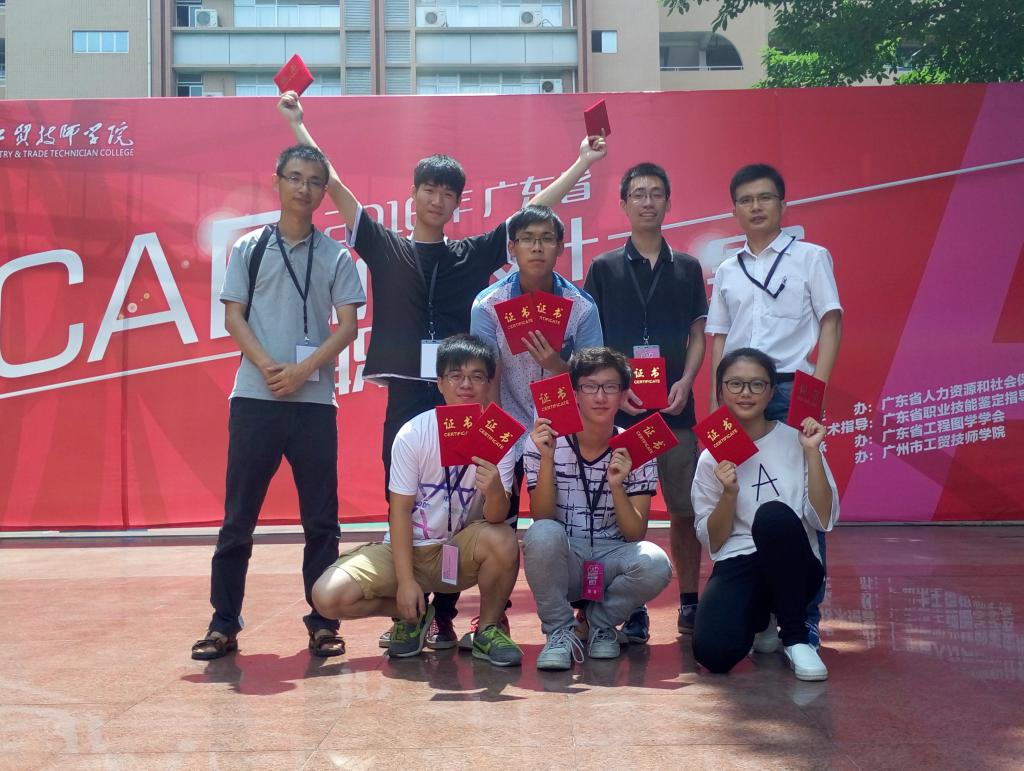 我校机电工程学院由李会文老师为领队,曾宪荣、丁红珍为指导教师,陈赞坚、李恬、邵其昌、冯景豪、何健亮、黎锦坚六名同学组成的顺德职业技术学院 A、B代表队参加本次大赛,吴晖辉、曾宪荣老师参加职工组竞赛。经过激烈的角逐,我校代表队取得优异成绩,荣获学生组团体二等奖2项,并同时获个人二等奖 5项,个人三等奖1项;职工组一等奖1项(吴晖辉)、三等奖1项(曾宪荣)。吴晖辉获广东省人力资源和社会保障厅授予“广东省技术能手”荣誉称号。