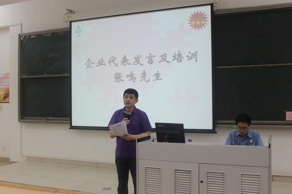 今年的“唯金班”课程活动在2015年“唯金空调杯”大学生营销大赛的基础上进行了总结提炼,开启了完善服务的新模式,已经开始实习的师兄师姐们也回校参加了活动,他们的到来给同学们鼓舞了士气,制冷专业教研室副主任何钦波老师鼓励大家勇敢去追逐自己的梦,企业代表张鸣总经理用他丰富的经验向同学阐述了营销方面的知识,“听君一席话胜读十年书”,前辈的经验将让参赛的团队事半功倍。唯金公司将会在4月22日带领学生去参观企业,更深入的了解产品,然后做出团队方案,为营销工作做好准备,提高销售业绩。