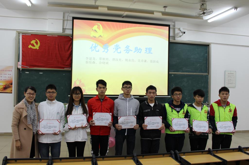颁奖大会上,机电学院学生支部学生干部蔡升、卢和通同学对本学期支部工作进行了汇报,组织2015年新发展党员与老党员在党旗下庄严宣读入党誓词,要坚定信念,时刻牢记使命。