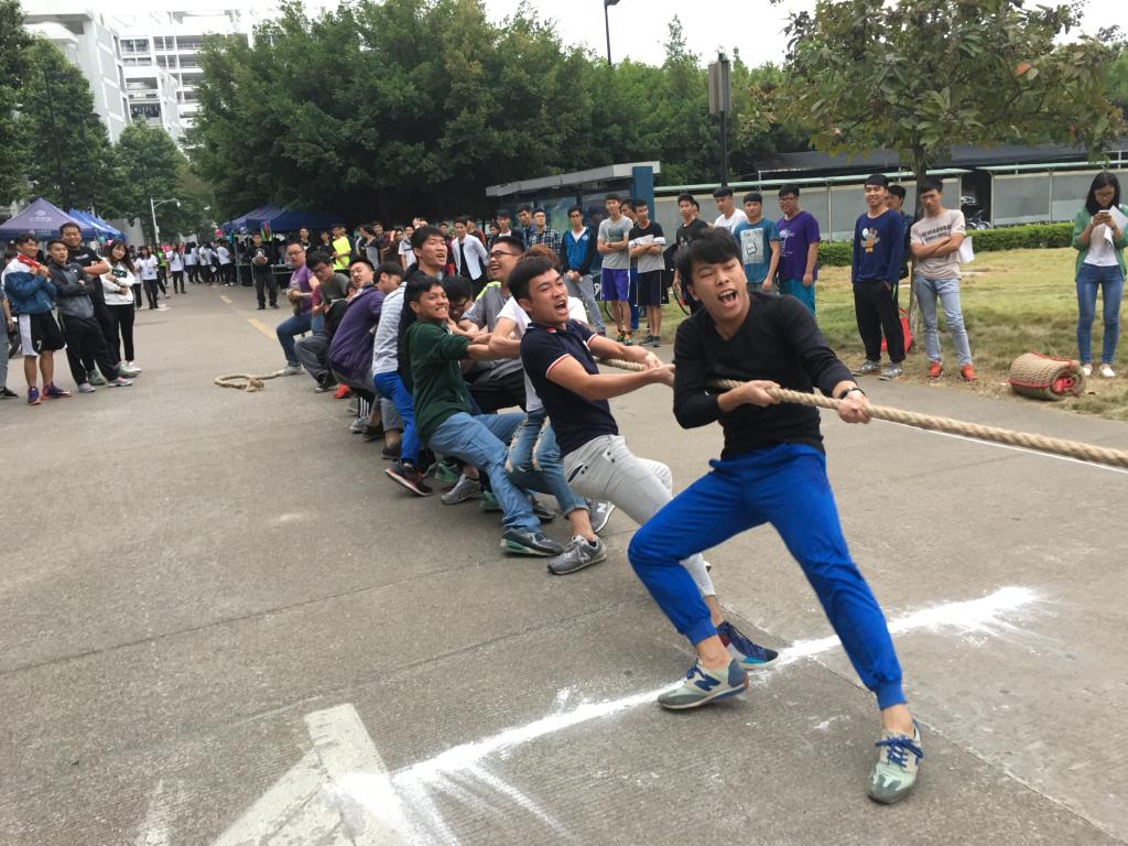 此次比赛共有14支队伍参赛,每队15人。比赛实行淘汰制晋级方式,抽签分组决定比赛顺序。当比赛的哨声一响起,队员们口中一起高呼着“一二,一二”, 双手紧握长绳,憋足了劲拼命往后拉,班导师、辅导员也在队伍旁边助阵加油,恨不得抓起绳子跟学生一起努力!班级内剩余的同学们自发组成啦啦队为本班人员加油。号子声、呐喊声,此起彼伏,飘荡在整个生活区的上空。
