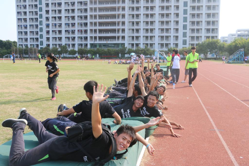 比赛开始之后,各班各人、各司其职,有负责喊口号的,也有人专门控制队伍节奏的;有的班级出发一帆风顺,到最后却因为自己的失误被人反超,有的班级出发磕磕碰碰,中途渐入佳境,最后成功反超;还有的班级虽然出发和途中跑的速度不尽如人意,但他们并没有选择放弃,而是互相扶持着,并肩走向终点。当他们到达终点,倒在垫子上的那一刻,他们脸上的笑容,仿佛在告诉我们,他们多天来的埋头苦干,等来的,就是倒在垫子上,每个人脸上的的喜笑颜开。这一刻,必将成为他们大学生涯里那些美好的回忆之一。