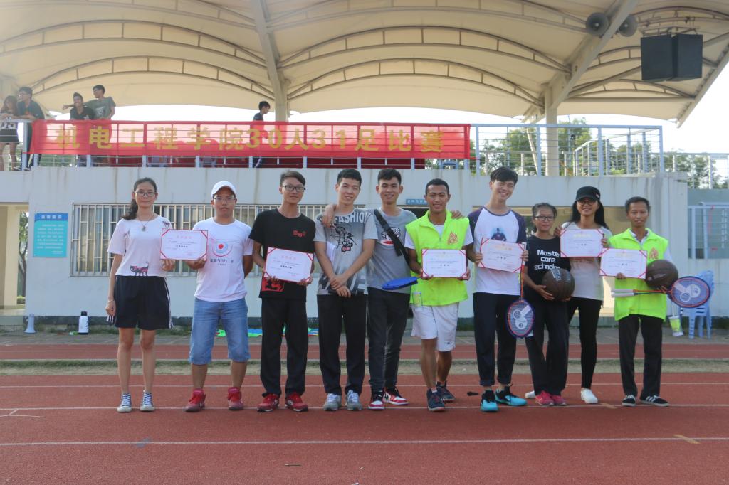 10月25日下午,由机电工程学院心理健康协会主办的机电工程学院2015级新生“30人31足”团体比赛在塑胶运动场举行,参加比赛有机电工程学院15级新生,机电工程学院党总支书记、辅导员、心理健康协会指导老师及学生处相关人员共500余人。