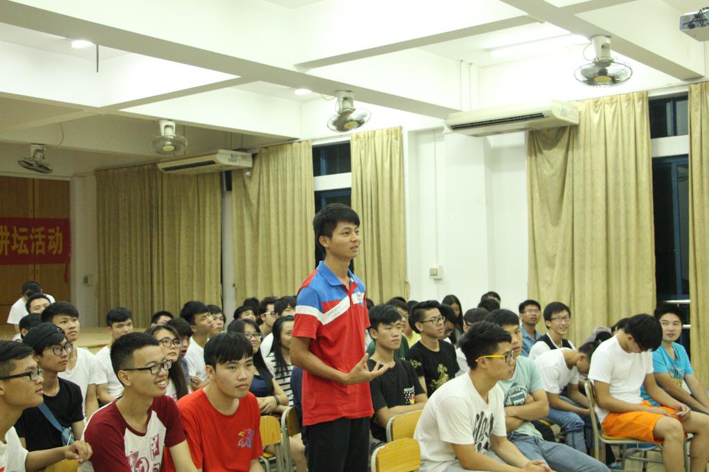 曾宪荣导师通过分享自己“怪诞不经”的求学路,讲述了大学三年的精彩生活,而从学生到老师的十年时间里,他华丽转身,同时更加热切的渴望学到更多的知识,于是,曾老师把业余时间花在了学习新的知识上,对他来说,知识就是让他生活的源泉。曾宪荣老师任职期间创立了“x工作室”,用自己的满腔热情为我校培养了一批又一批的优秀学生。“用心去感受,用青春去磨砺”,曾老师一直在践行着这句话,也鼓励在场的学子们认真去体会和感受这句话。感人至深的演讲,使得在场的学子们重新定义自己的大学生活,对未来有了自己的计划。活动最后,曾老师与现场学子进行互动交流,把本次讲坛推向了高潮。
