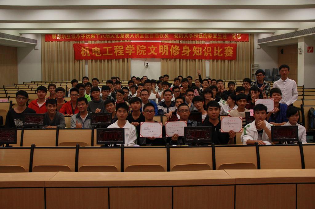 2014年11月19日晚,为迎接我校15周年校庆,机电工程学院举行了2014年文明修身知识比赛,学院辅导员和三个年级300多名同学参加。