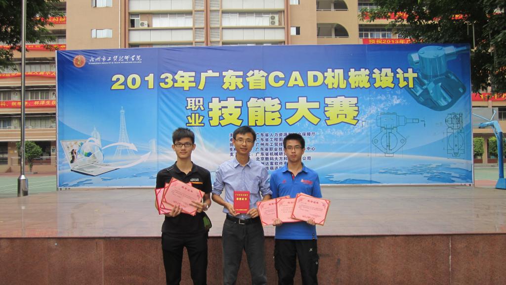 7月12日-14日,由广东省人力资源和社会保障厅主办,广东省工程图学学会承办的2013年广东省CAD机械设计职业技能大赛在广州市工贸技师学院举行。共有包括华南理工大学、湛江师范学院、广东技术师范学院、深圳职业技术学院等60所学校的180名选手参赛。我校机电工程系以程时甘教授为领队,曾宪荣、皮云云、李会文老师为指导教师,选派学生共同组成顺德职业技术学院代表队参加了职工组和师生组的比赛。经过激烈的角逐,我校代表队荣获师生组团体一等奖,同时荣获学生组个人一等奖、二等奖各1项,曾宪荣老师荣获职工组一等奖,曾宪荣、皮云云、李会文三位教师荣获大赛“优秀指导教师”称号。