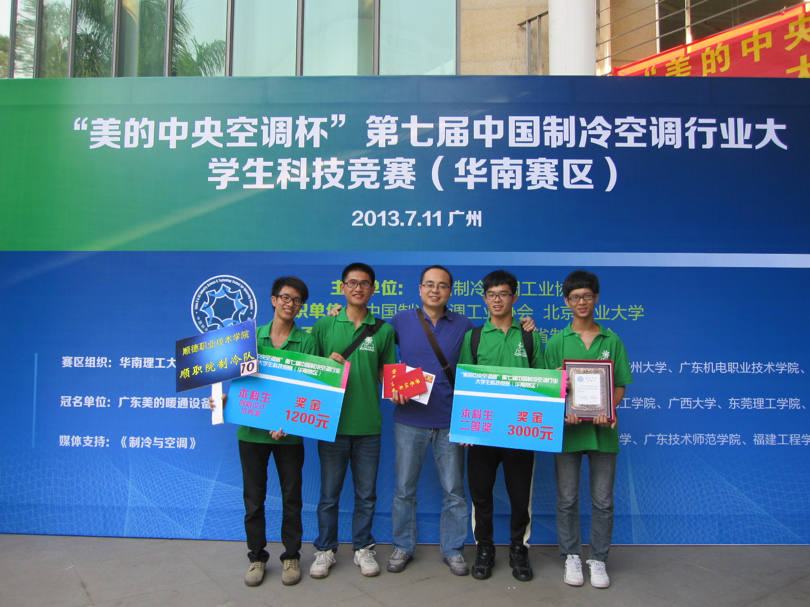 本次比赛由中国制冷与空调工业协会主办,华南理工大学承办。来自广东、广西和福建的本科和高职院校组成12支代表队,参赛学生有本科生、研究生等,我校是参与比赛的两个高职院校之一。机电系制冷专业经过选拔,派谴余华明和吴治将两位老师带队指导,张敏杰、茹焯均、何乐贤、梁宇坤4名学生组成“顺职院制冷队”参赛。在比赛中,同学们表现非常突出,在与包括华南理工大学、广西大学、广东工业大学等知名高校代表队的同台竞技中丝毫不惧,自信十足,以自己的实力取得了优异成绩,赛出了威风,赛出了水平。